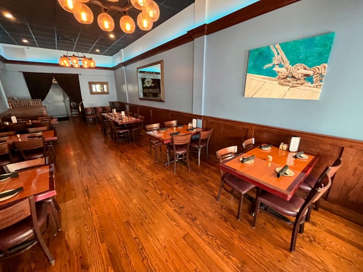 The restaurant has ramp access from both the parking lot and landing dock. Once inside, the area has enough space to navigate between tables comfortably. Staff are on hand to provide additional assistance, and visibility guidance is provided in the form of large print menus.