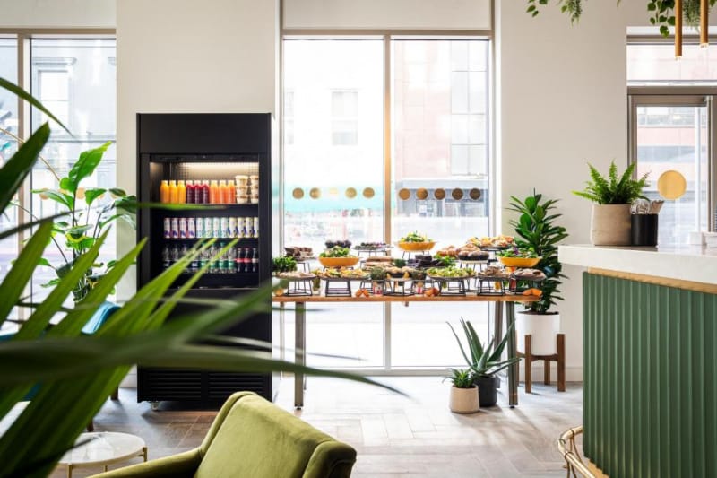 - Onsite dining, drinks, and coffee shop (rooftop bar available)