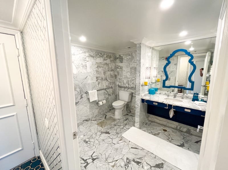 Regarding the rooms, different accessibility needs are met depending on the room chosen. The standard King and Deluxe Queen rooms offer a shower seat, wide door, and bathtub. However, should you choose a Deluxe Junior Suite, there are roll-in showers, a fixed shower seat, grab bars, and wide turning spaces throughout the room. You can check for further room details here.