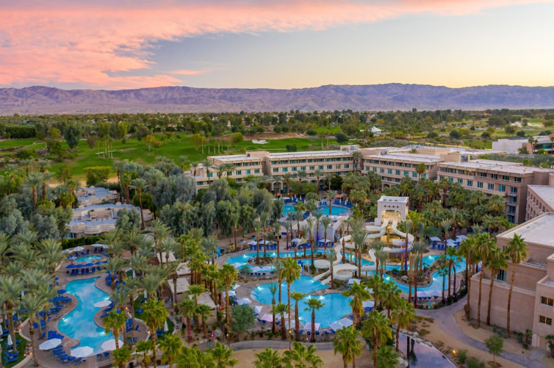 The Grand Hyatt Indian Wells is one of the largest resorts in the guide, recently rebranded after a $64 million renovation. Set in Indian Wells, it has 531 rooms and villas, nine pools, the largest waterpark in Greater Palm Springs with dueling water slides and a lazy river, a 30,000-square-foot spa, and multiple restaurants. It's a great option if you're traveling with family or want a resort where you genuinely never have to leave the property.