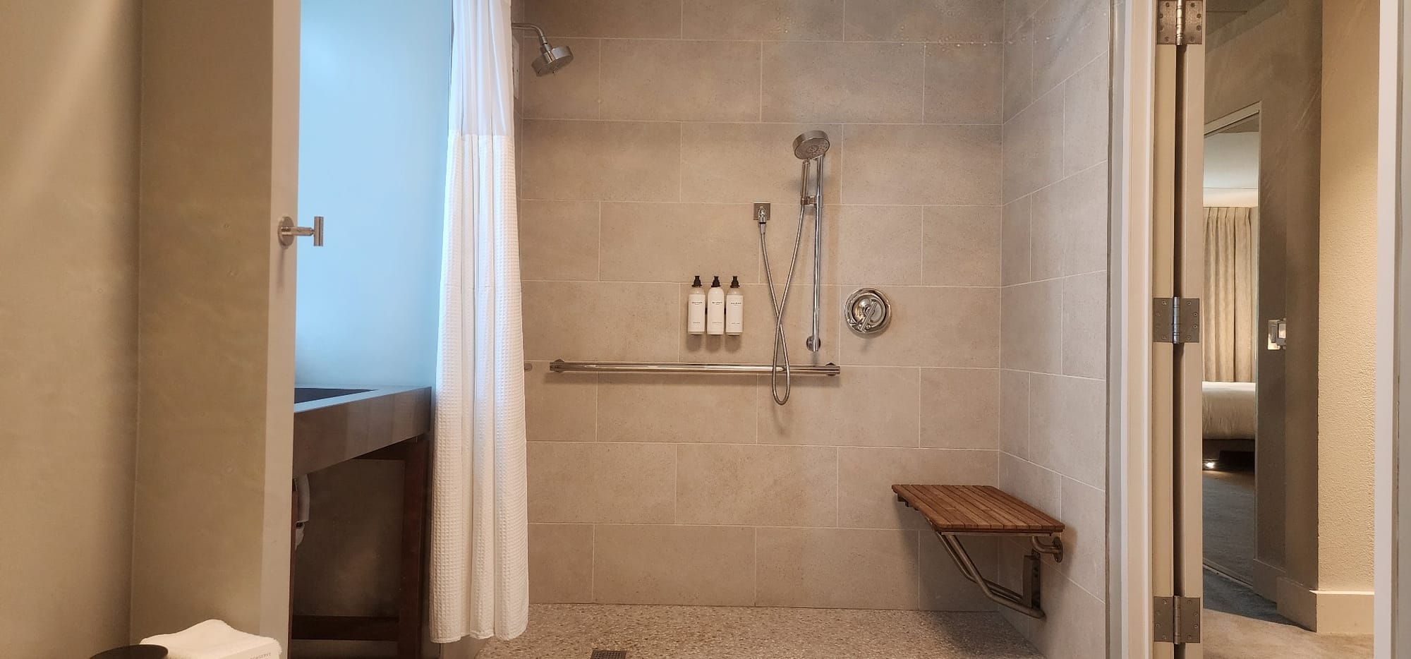 Accessible room and roll-in shower at Renaissance Esmeralda Resort & Spa