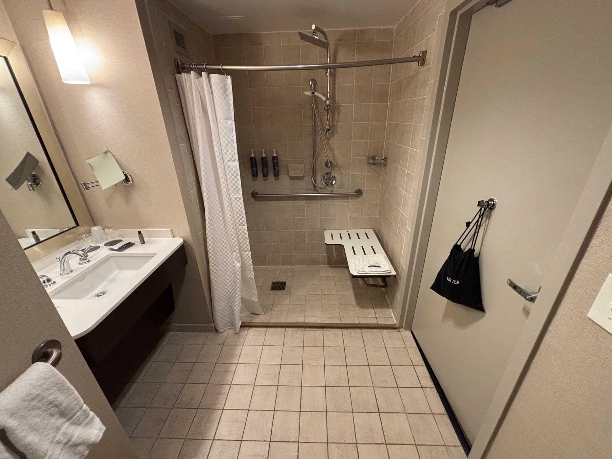 Roll-in shower and accessible room at The Westin Savannah Harbor Golf Resort & Spa