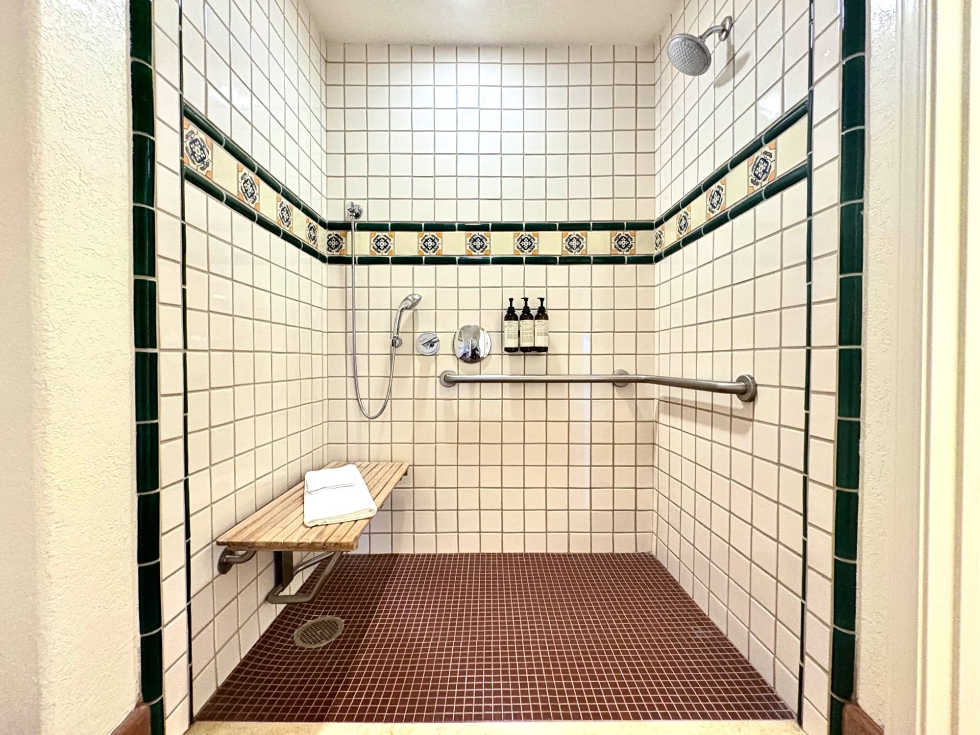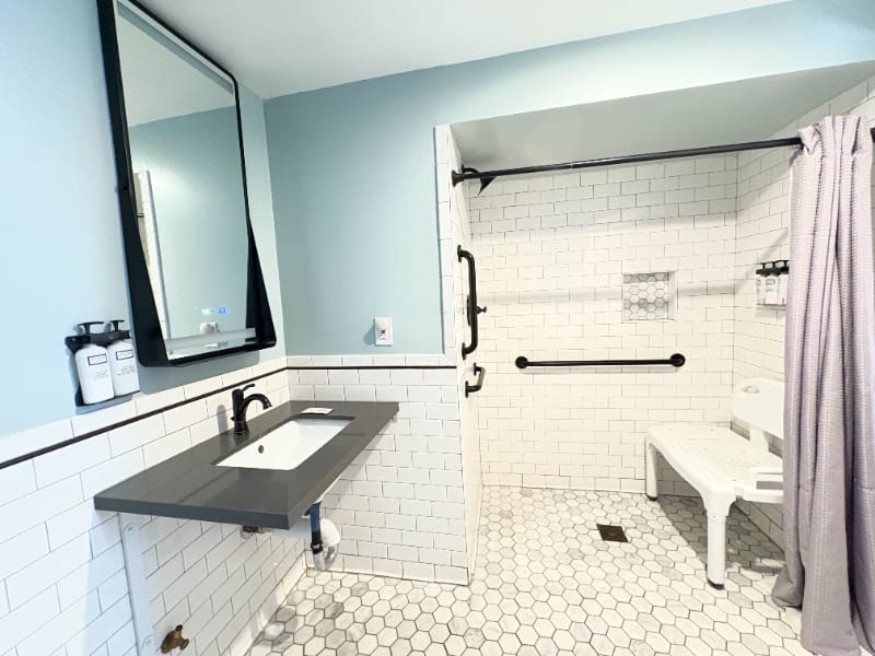 Accessible room and roll-in shower at Vinarosa Resort & Spa