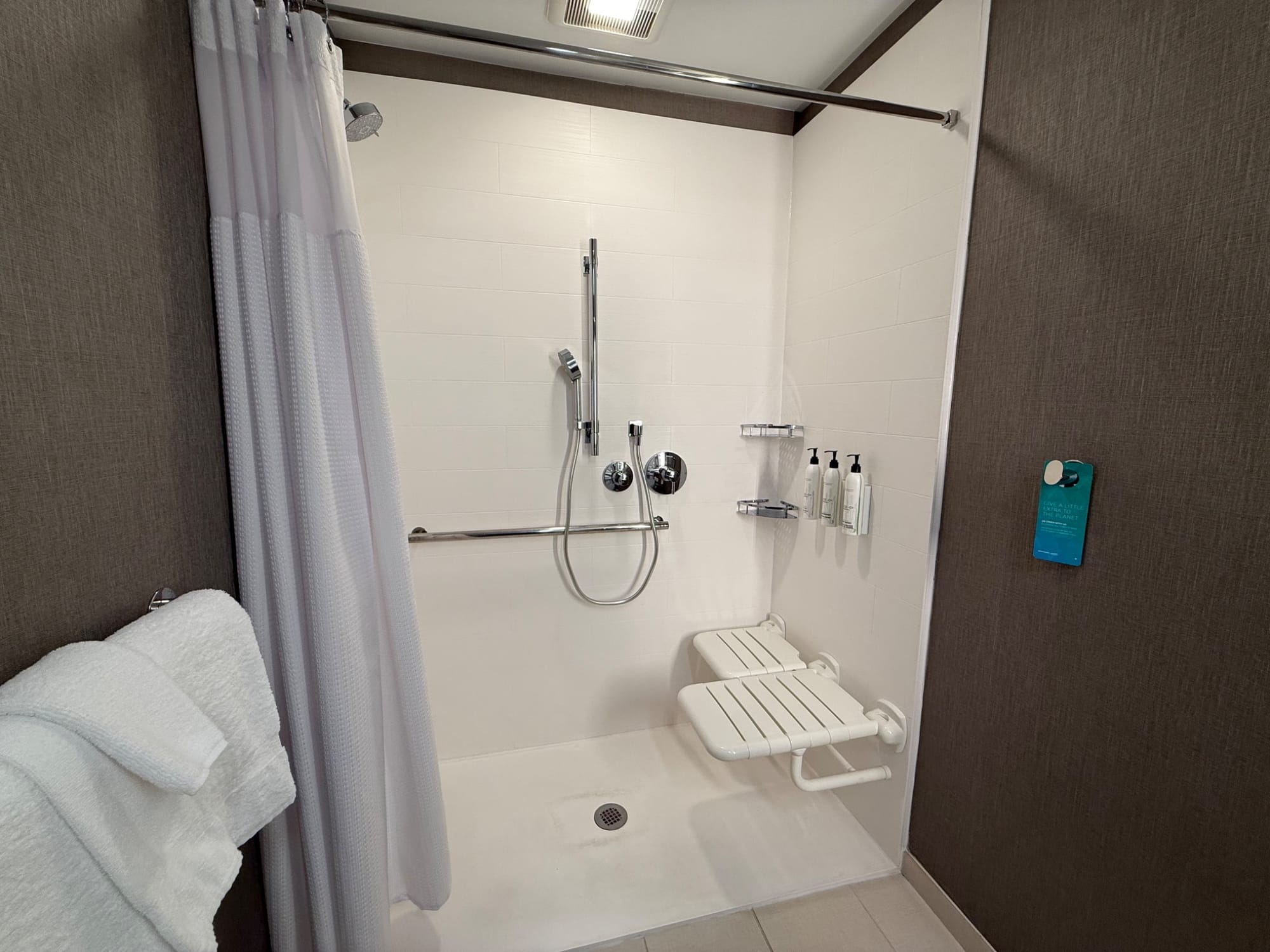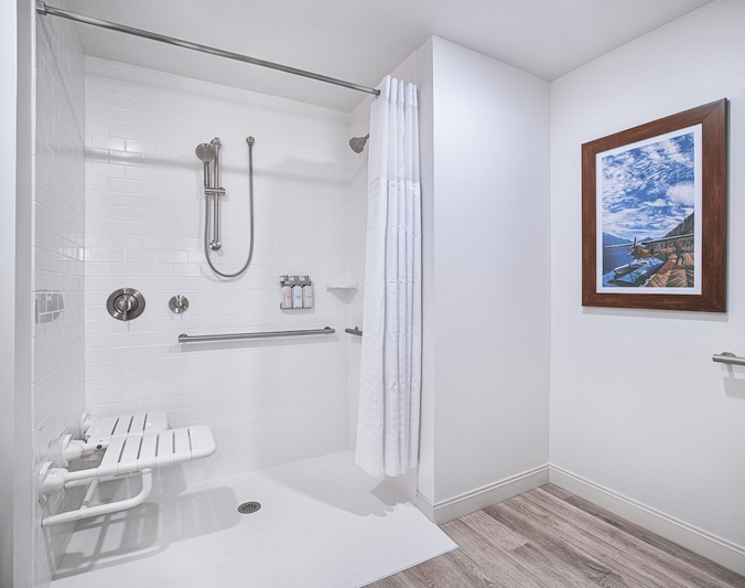 Accessible bedroom and roll-in shower at Holiday Inn Express