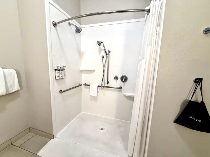 Accessible bedroom and roll-in shower at SpringHill Suites