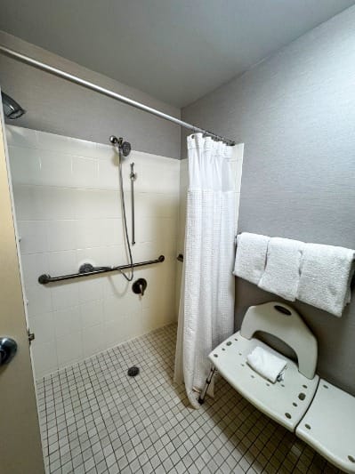 Accessible room, roll-in shower, and onsite bistro at Courtyard Panama City