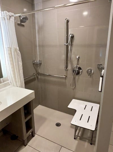 Accessible room, roll-in shower, and dining area a tHyatt House Atlanta