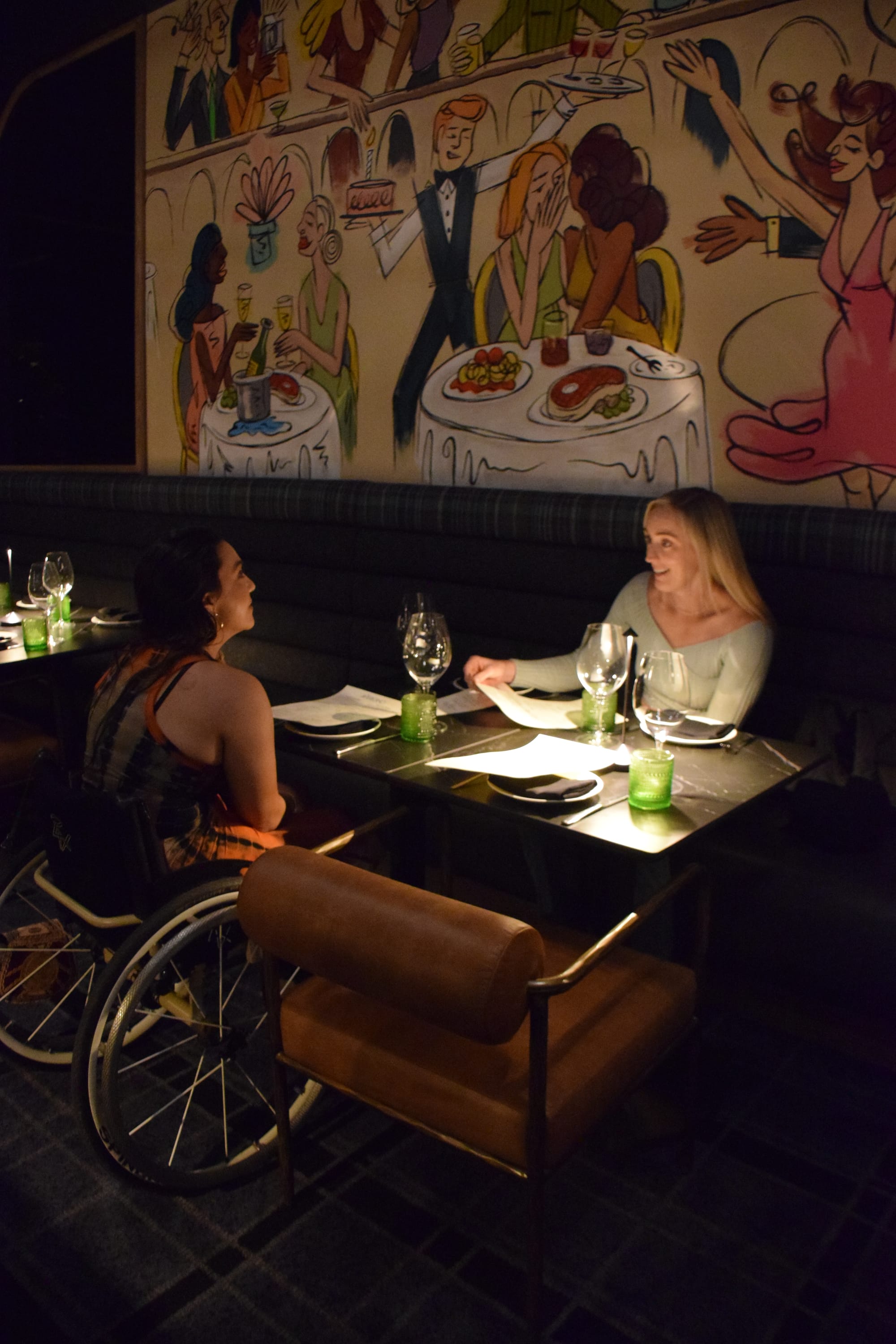 We ate at Weft & Warp a couple of times since it's the restaurant at the Andaz, the hotel we stayed at. We did brunch on the patio and it was fantastic. Everything was delicious. The staff moved chairs as needed and allowed me to pick the table that was best for me and my wheelchair. For dinner one evening, we sat at the lowered bar top for a bit, which is always fun because I never get to sit at a bar top as a wheelchair user. We had to go around one table that was a little tight, but there were no real issues. Very easy to get in and out.