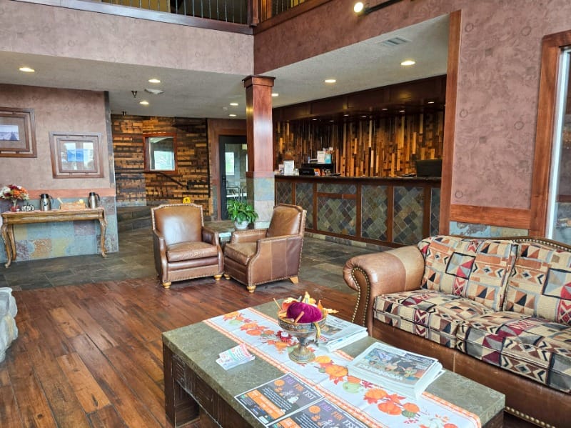 Roll-in shower and lobby at Kathryn Riverfront Inn