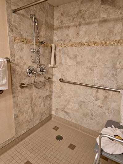 Accessible bedroom and roll-in shower at Best Western Plus Ocean View Resort