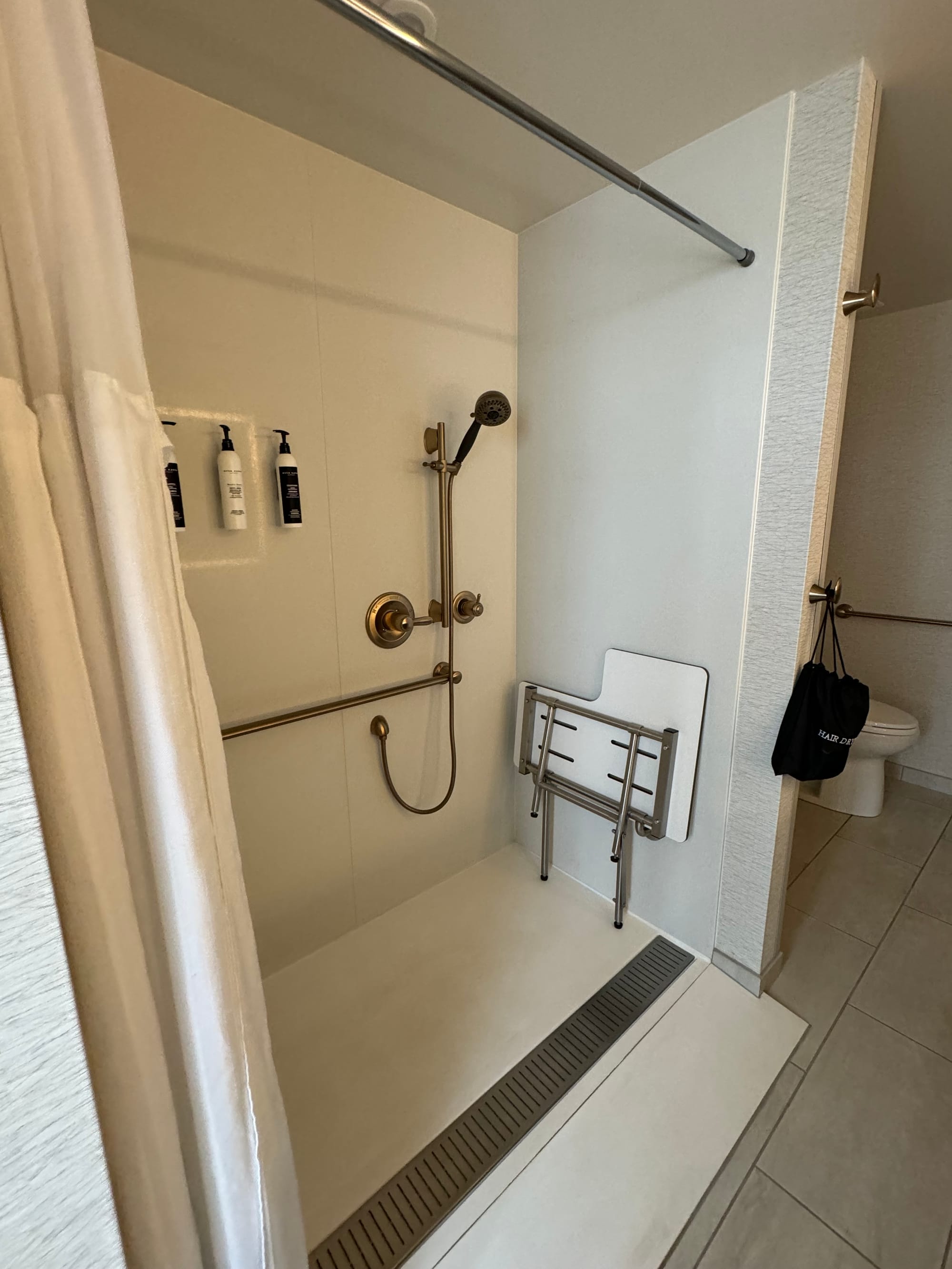Accessible room and roll-in shower at The Axis Moline Hotel, Tapestry Collection by Hilton