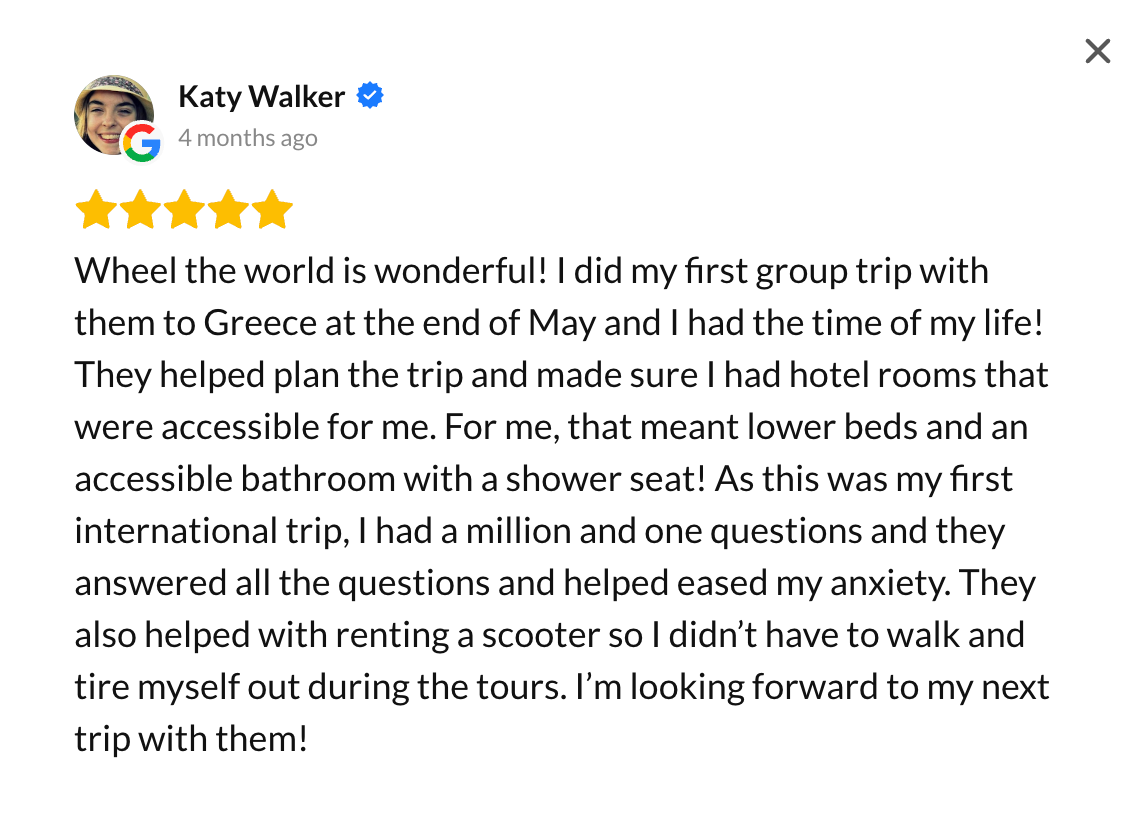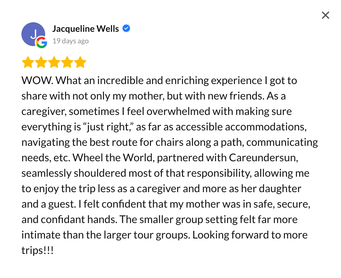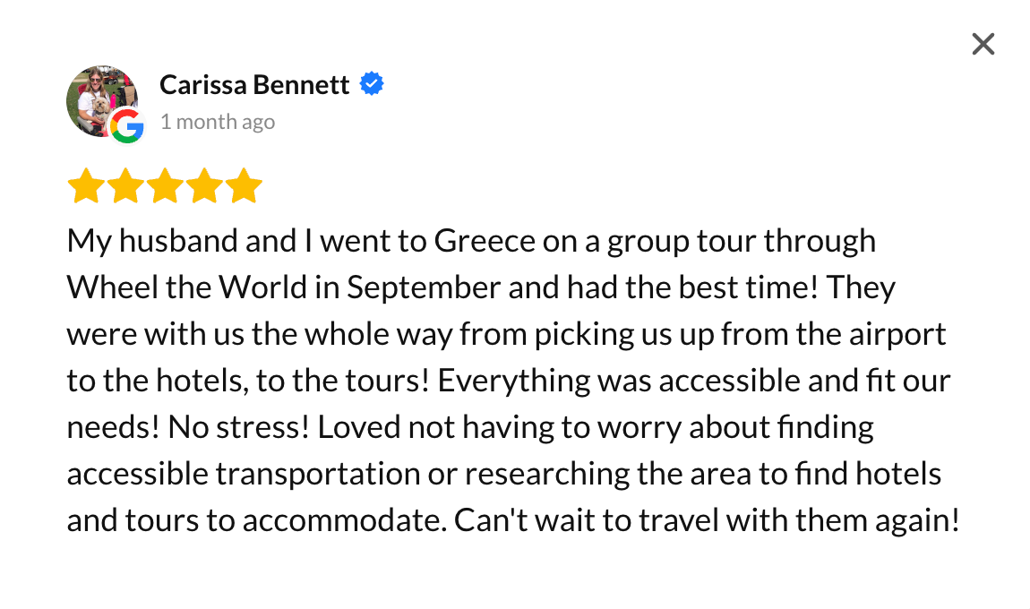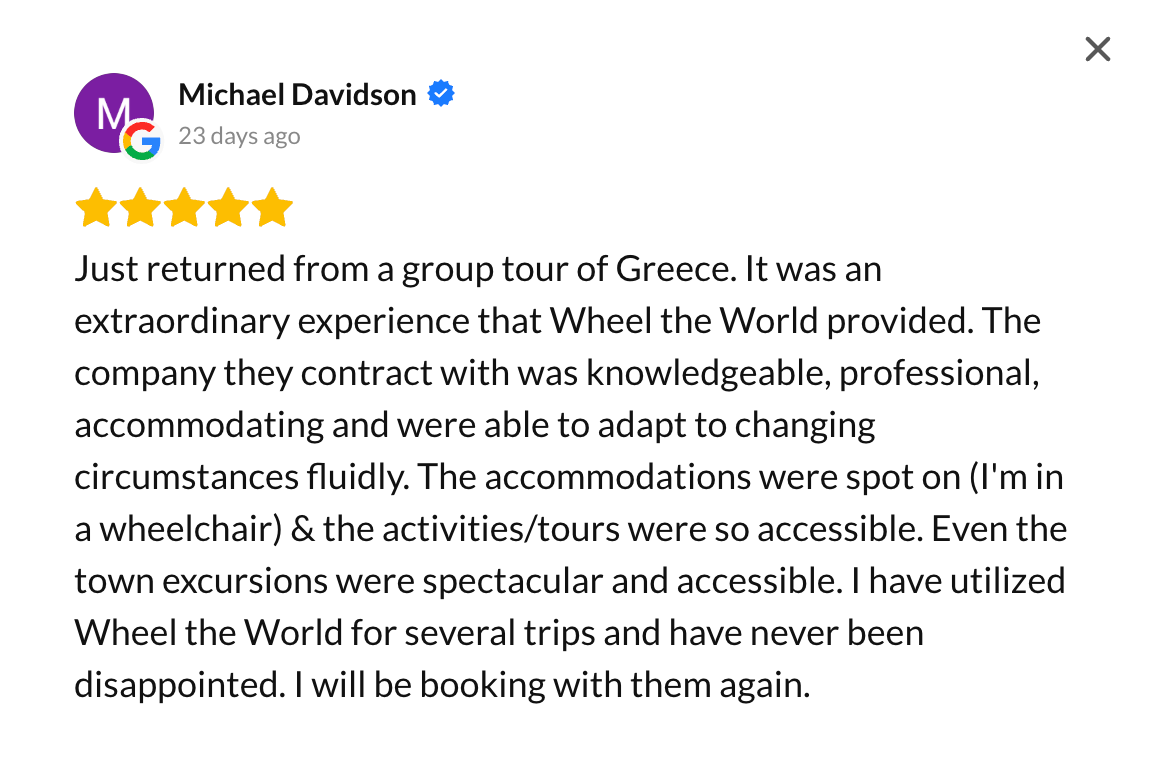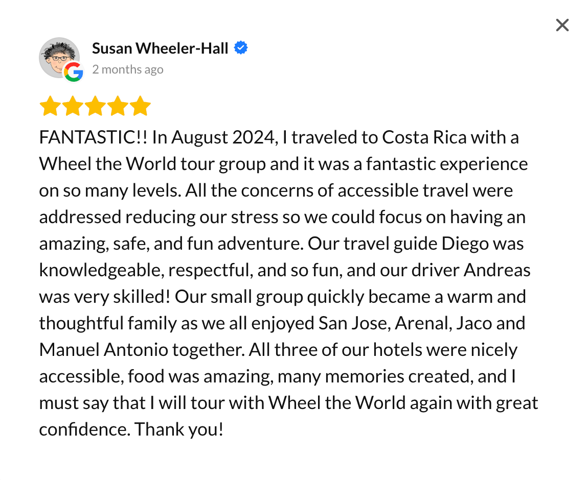 - Hassle-Free Planning: Save hours of research and planning and leave it to the travel experts. They'll handle the logistics, from accessible accommodations to transportation, activities, and more, so you can focus on enjoying your journey. This is one of the many reasons to book with Wheel the World.