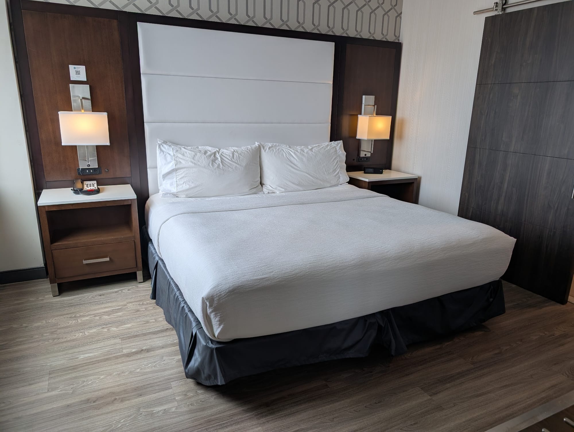 Accessibility: Automatic doors at the main entrance with tactile paving from the parking area. Both standing and seated options at the front desk. The elevator is 78 inches wide with Braille and raised numbers on the buttons. The accessible room has a shower with grab bars, a fixed shower seat, and a handheld showerhead, a bed at 25 inches with 7 inches of clearance underneath, and a pool lift. Two things worth knowing: the shower has a 2.5-inch threshold rather than a fully flat entrance, and the bathroom sliding door is 30 inches wide, which is narrower than standard. So just make sure to confirm those details work for your equipment before booking.